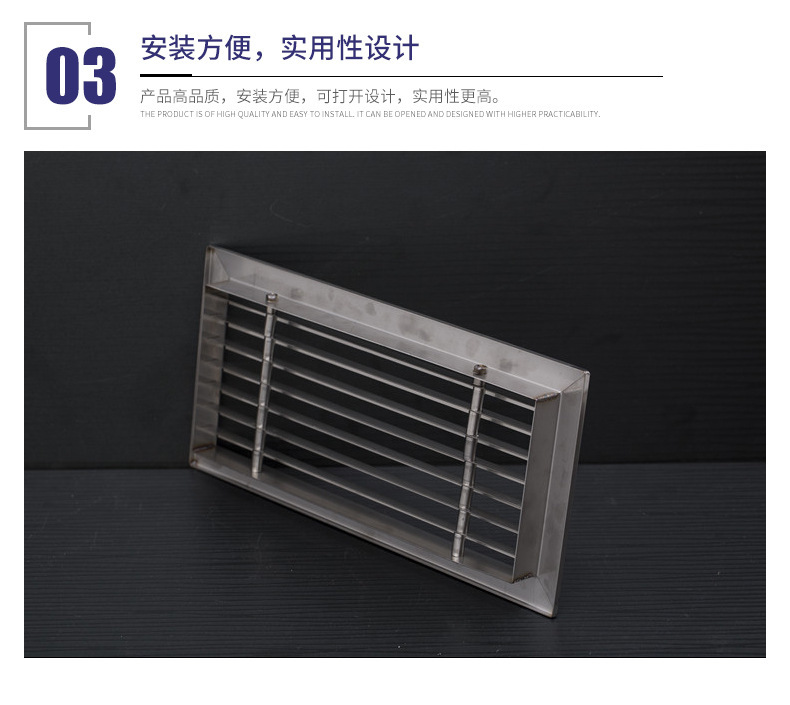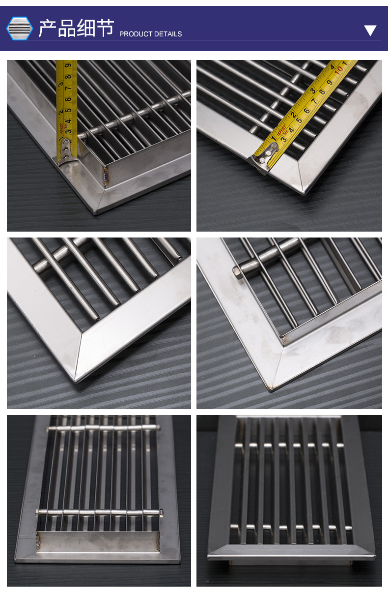 不銹鋼風(fēng)口通常也是指空調(diào)的回風(fēng)口,一般來說它的后面都會帶著過濾網(wǎng),不銹鋼風(fēng)口表面還會有黑色的灰塵積在角落里,很容易區(qū)分出風(fēng)口是空調(diào)系統(tǒng)中送風(fēng)用的,一般它的后面不會帶過濾網(wǎng),表面會很干凈,送冷風(fēng)時可能還會有冷凝水積聚在上面;不銹鋼風(fēng)口通常也是指空調(diào)的回風(fēng)口,一般來說它的后面都會帶著過濾網(wǎng),不銹鋼風(fēng)口表面還會有黑色的灰塵積在角落里,很容易區(qū)分;新不銹鋼風(fēng)口是用風(fēng)機把外面的自然風(fēng)直接送到所需區(qū)域,一般也帶著過濾網(wǎng);出風(fēng)口一般為方形散流器,呈方形多層可拆卸,一般用防火帆布連接;送冷風(fēng)時水珠掛在上面!有回風(fēng)口多呈長方形,有稱單(雙)層百葉風(fēng)口,并帶有過濾網(wǎng);主要作用在于把污濁的空氣吸回去。新不銹鋼風(fēng)口則較小,每個房間貼墻安裝或是于送風(fēng)口呈直線的必是新風(fēng)口無疑!