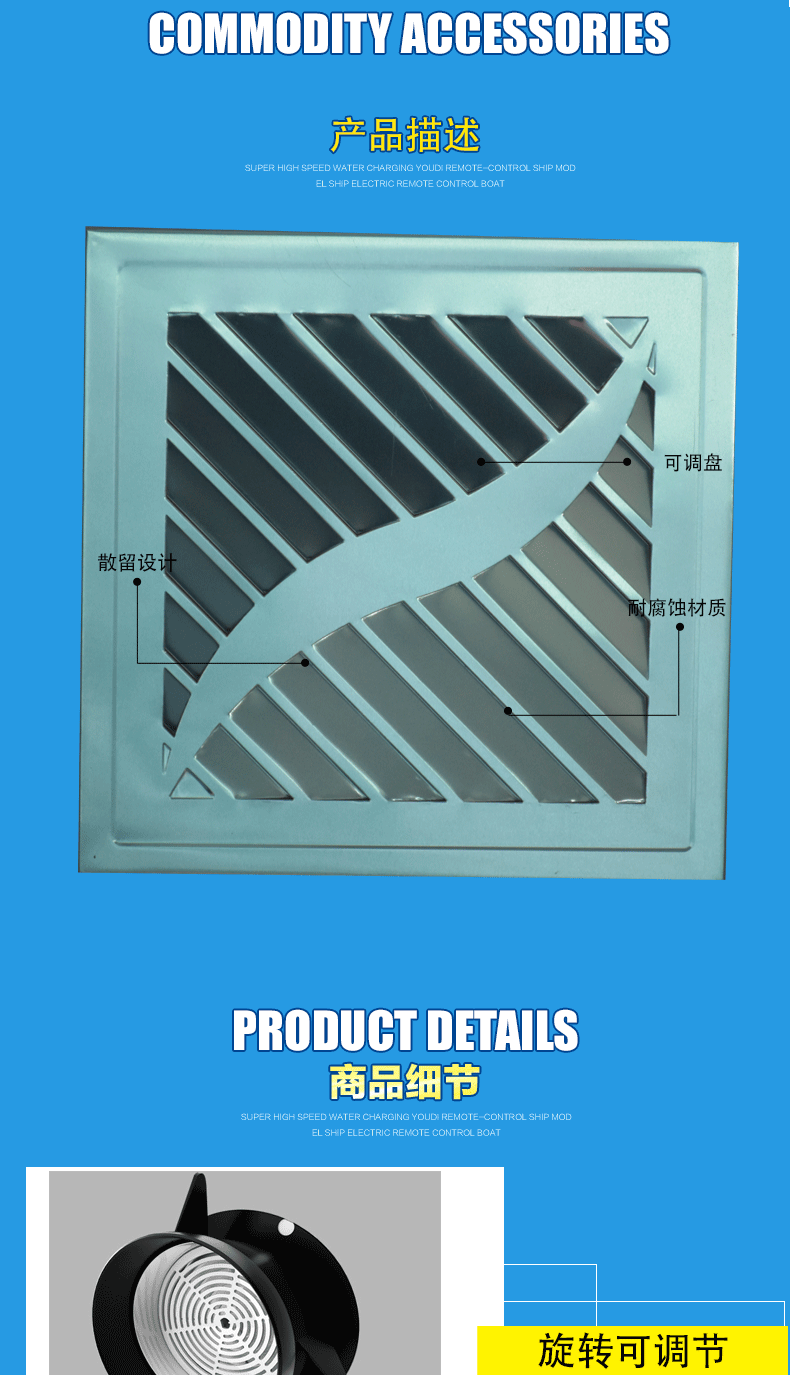 制作:風口做成加厚型(外框1.0mm,葉片0.8mm);一般制作都是加厚型的,要薄型的可以跟客服聯(lián)系;也可烤兩遍漆,顏色可按客戶要求進行烤制(價格另計,量大從優(yōu))
